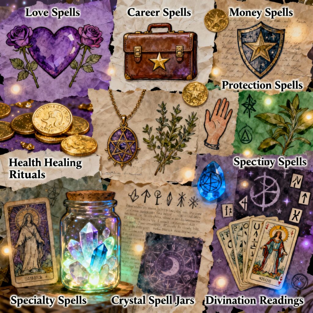 These spells aren’t just words they’re energetic tools designed to help you attract, release, transform, and align. We work with your unique situation to create rituals that are safe, effective, and deeply personal.